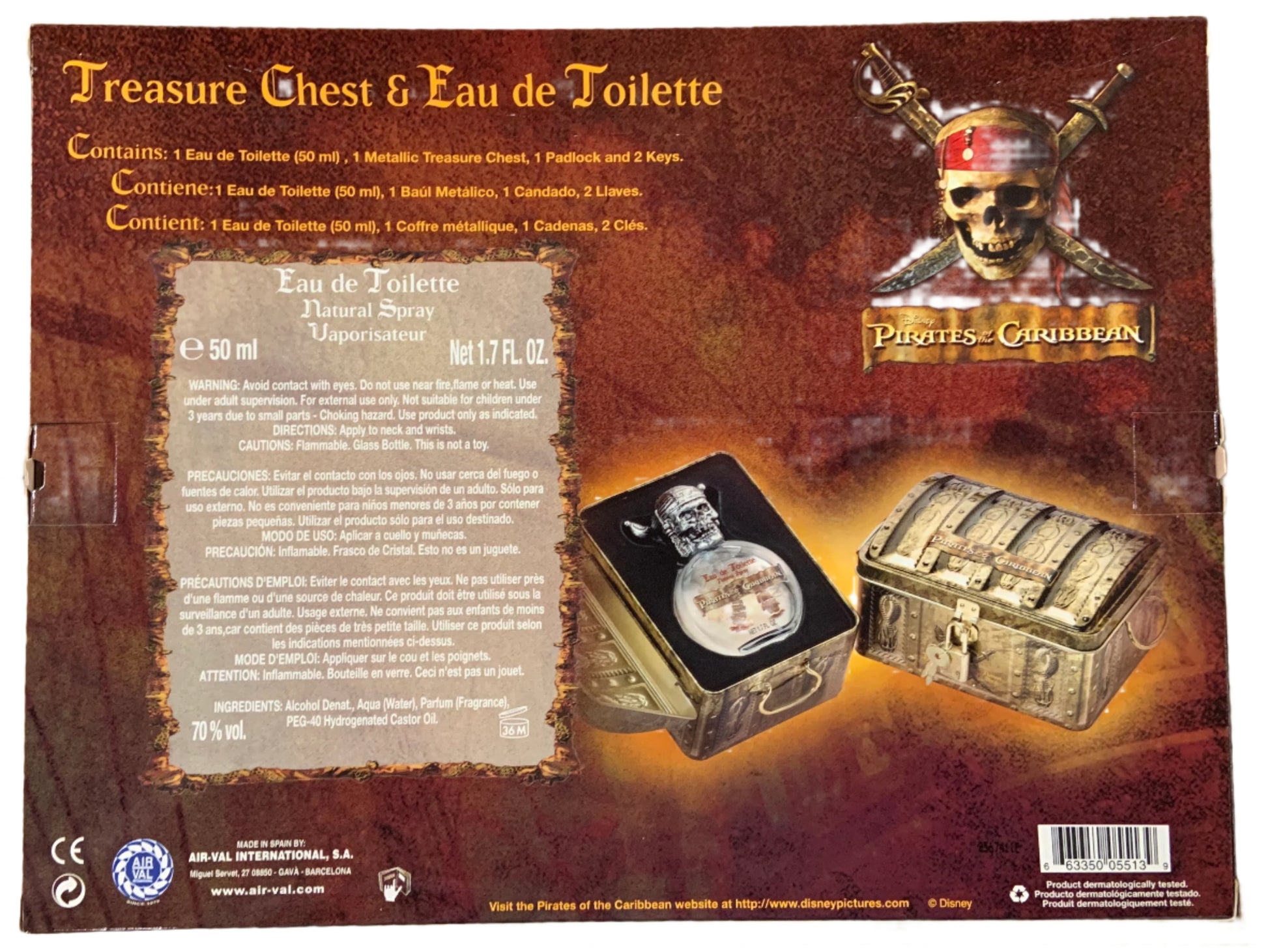 Pirates of the Caribbean Collector's 4 Pc Perfume Gift Set (1.7 oz EDT Spray + Treasure Chest + Padlock + 2 Keys)